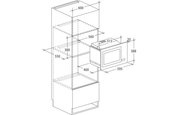 - Dimensions: H 388 x W 595 x D 400mm