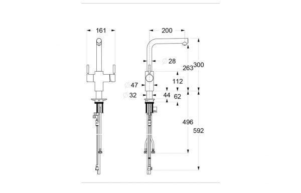 • Tap Dimensions: Overall Height – 297mm; Spout Height – 264mm; Spout Reach – 200mm; Base/Handle Width – 161mm