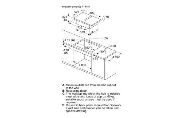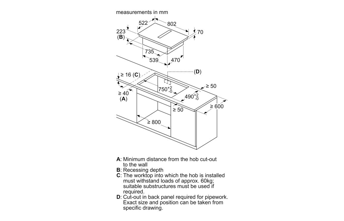 - Dimensions: H 223 x W 802 x D 522mm
