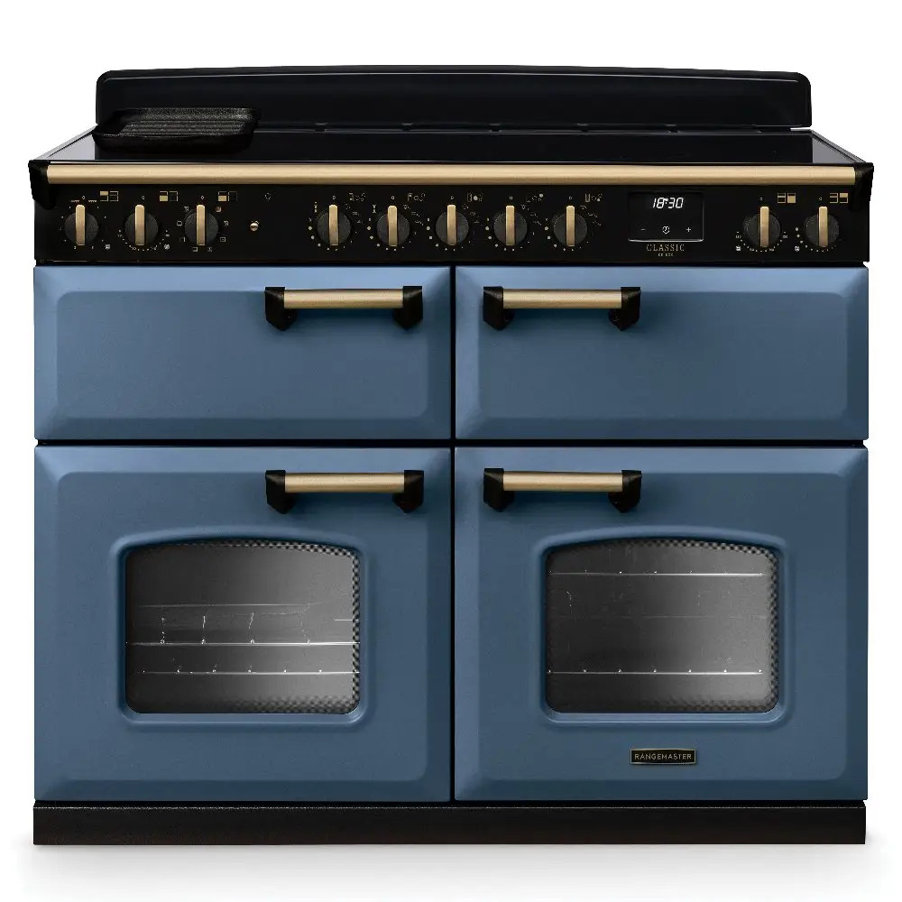 The Rangemaster CLDLB110EIPSTB/AB1 Classic Deluxe delivers standout performance with timeless style. Offering a versatile cooking experience, it features a multifunction main oven, a fan-assisted electric oven, a smooth-glide grill, a dedicated slow-cook oven and a 5 Zone Electric Induction hob. Thoughtful touches such as the convenient Handyrack make roasting effortless, allowing you to check and baste dishes with ease. Finished in elegant Stone Blue, it brings a sophisticated country charm to any kitchen.